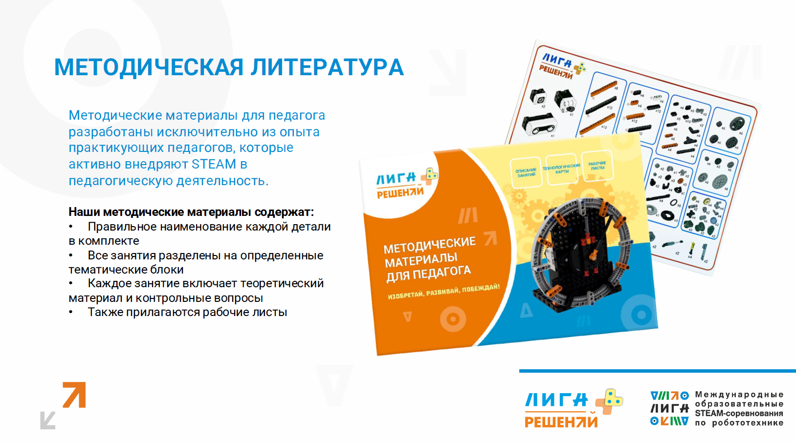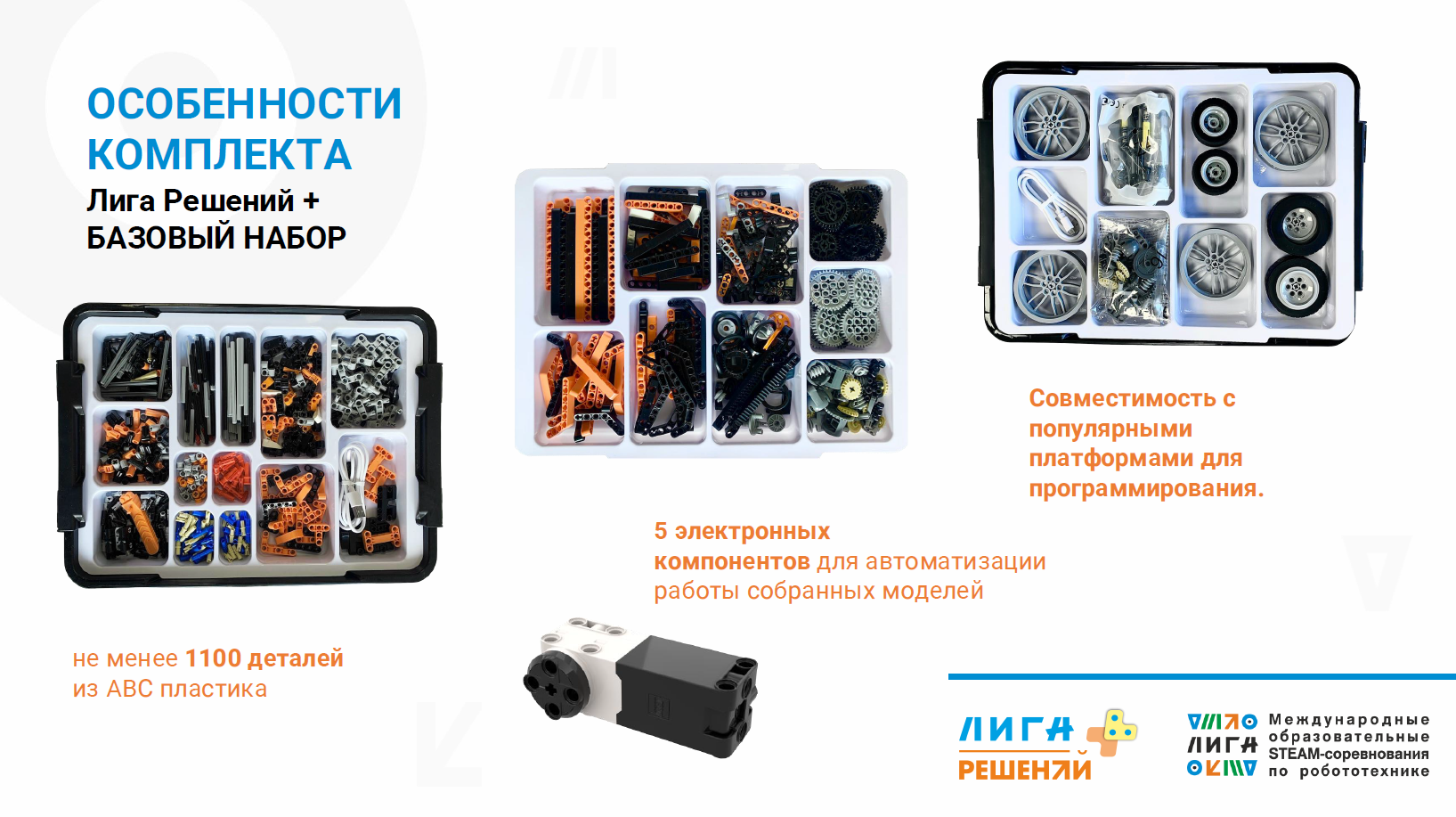 Набор допущен к международным образовательным STEAM-cоревнованиям Лига, в направлении Лига "Решений"
